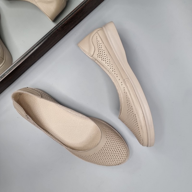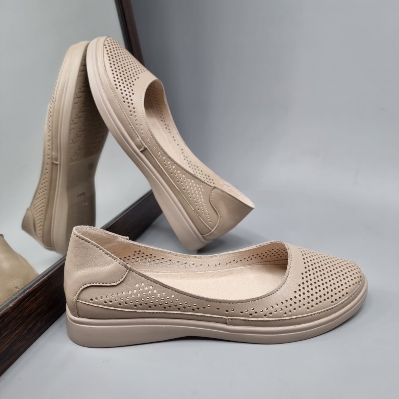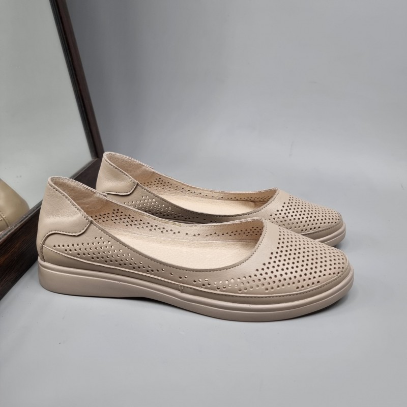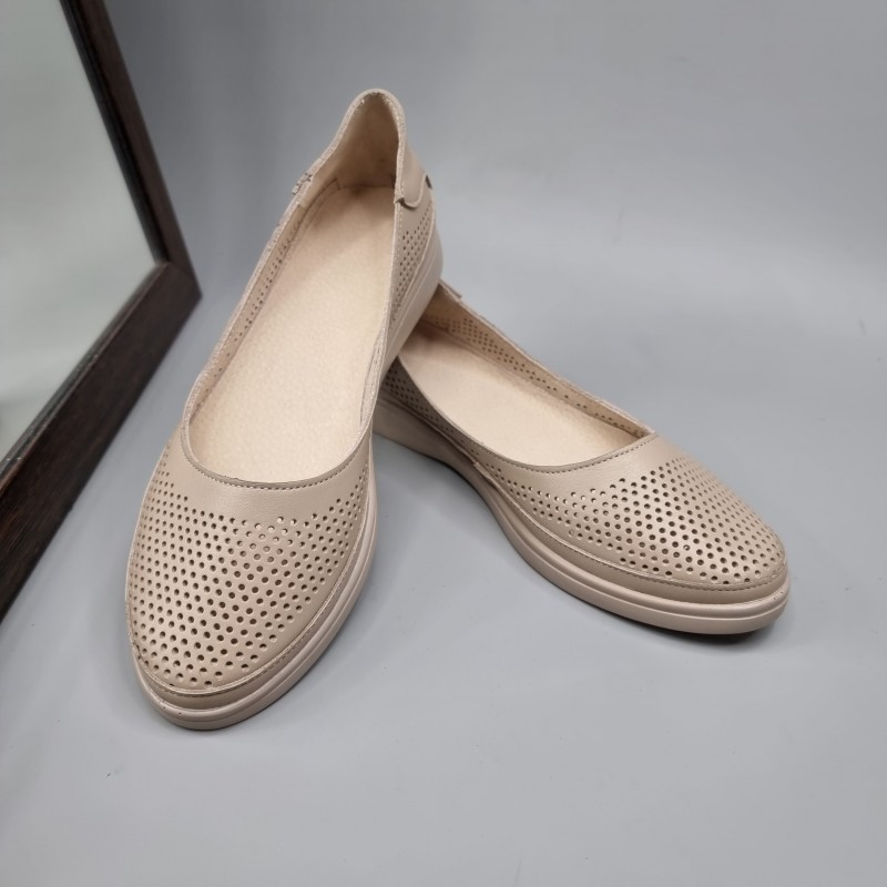 Жіночі балетки Амелі Капучино з натуральної шкіри з перфорацією.