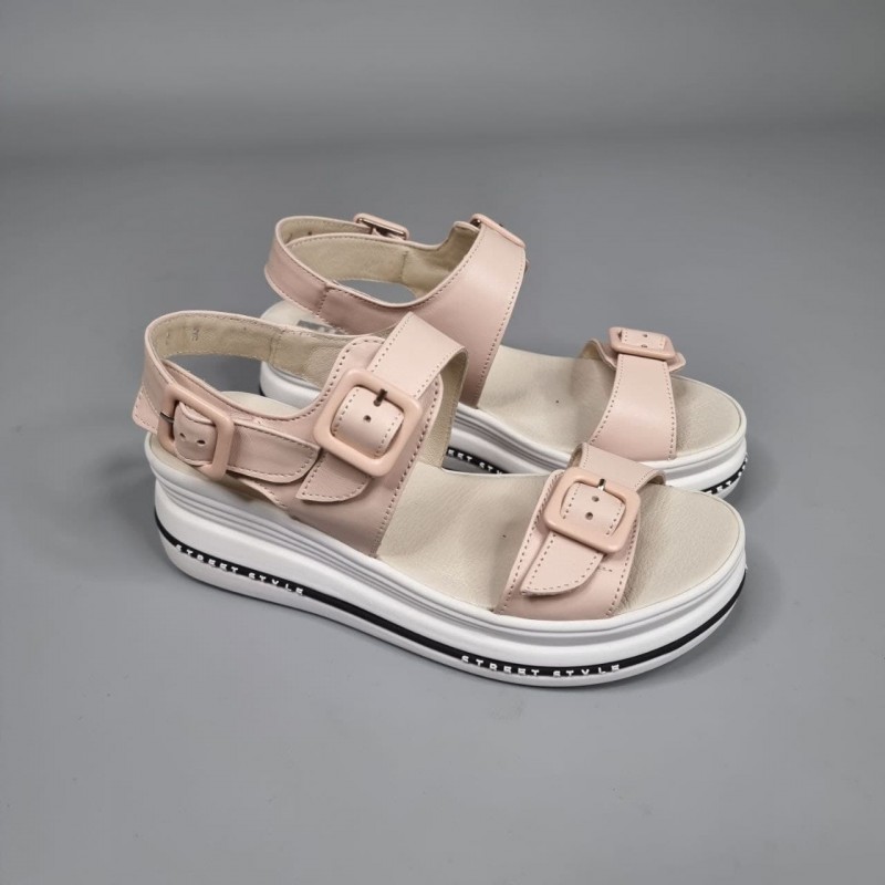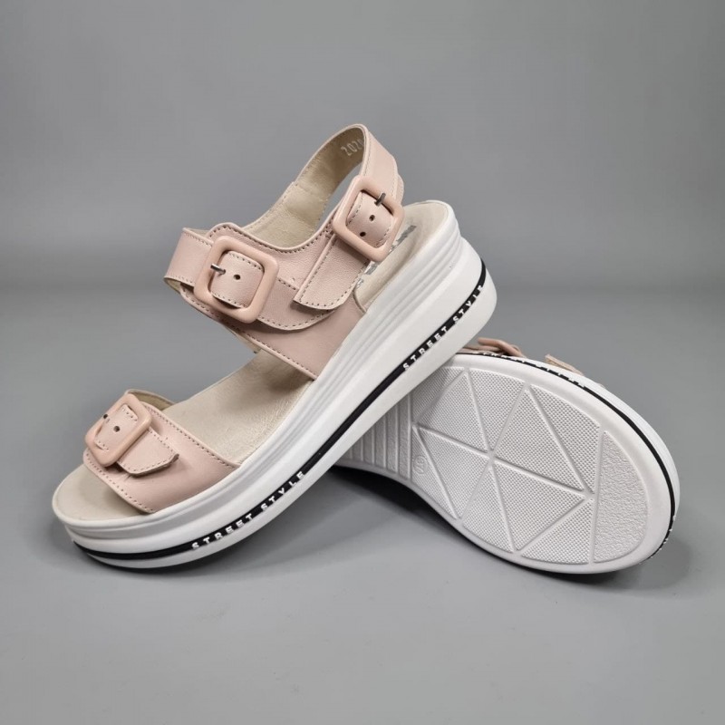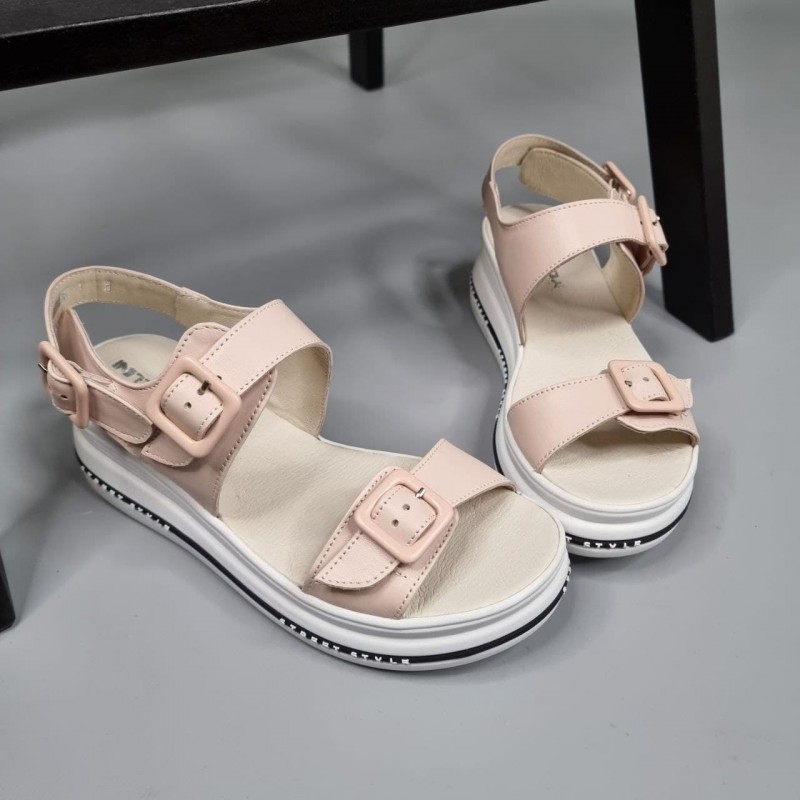 Комфортні босоніжки Флорида Пудра з натуральної шкіри на платформі