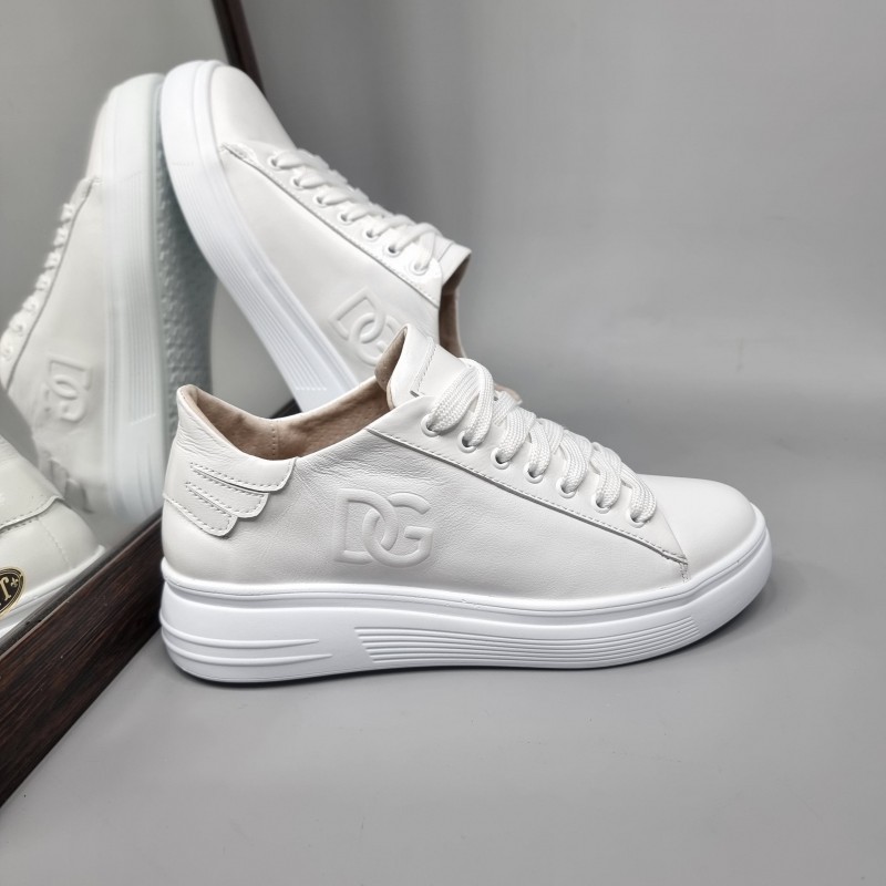 Стильні кеди Дора Вайт з натуральної шкіри.