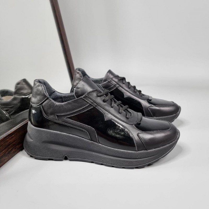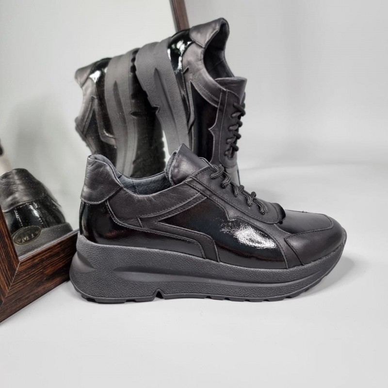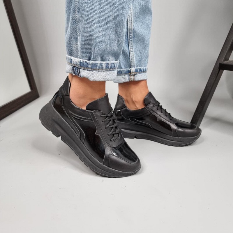Стильні кросівки Коллінз Блек з натуральної шкіри.