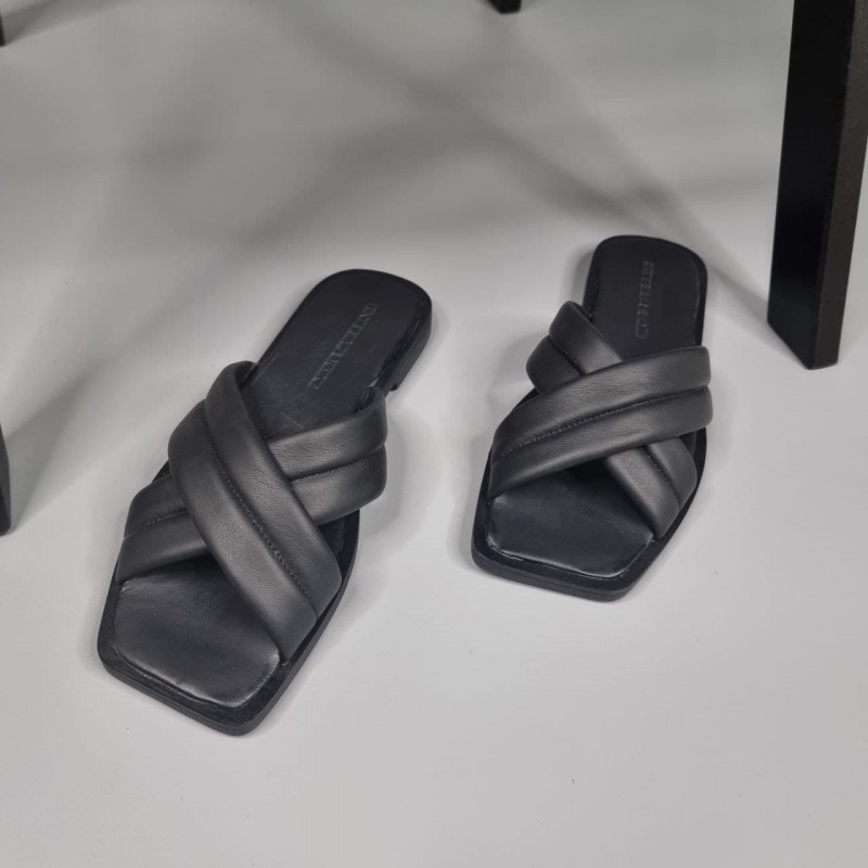 Комфортні шльопанці Каралін Блек з натуральної шкіри